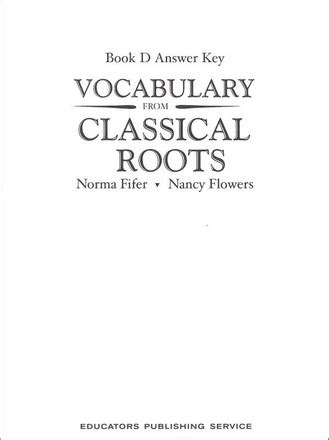 Read Online VOCABULARY FROM CLASSICAL ROOTS D ANSWER KEY LESSON 3 4 Hardcover